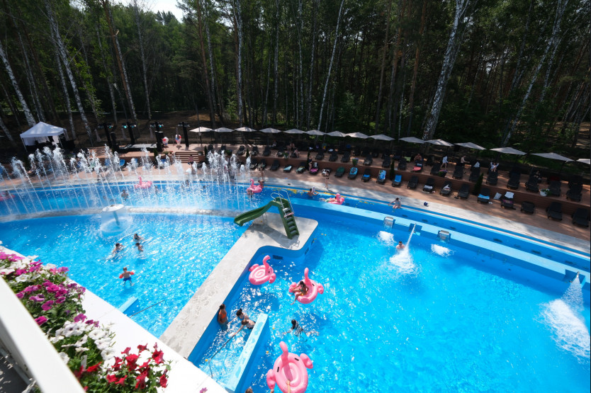Вместимость комплекса — 500 человек. Он включает взрослый и детский бассейны, искусственную реку с водными аттракционами, спа-зону, зону саун, фуд-корт и детскую зону.