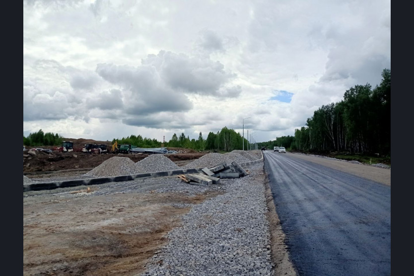Строители уже соорудили щебеночно-песчаное полотно дороги и сейчас укладывают слой асфальтобетона. Одновременно идут работы по обустройству тротуаров, велосипедной дорожки, устанавливаются опоры освещения и дорожные знаки.
