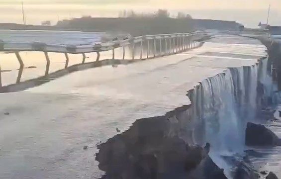 Из-за перелива воды размыло бордюр. Серьёзно пострадало дорожное полотно, поэтому проезд небезопасен. На поврежденном участке полностью запретили движение всех видов транспорта.