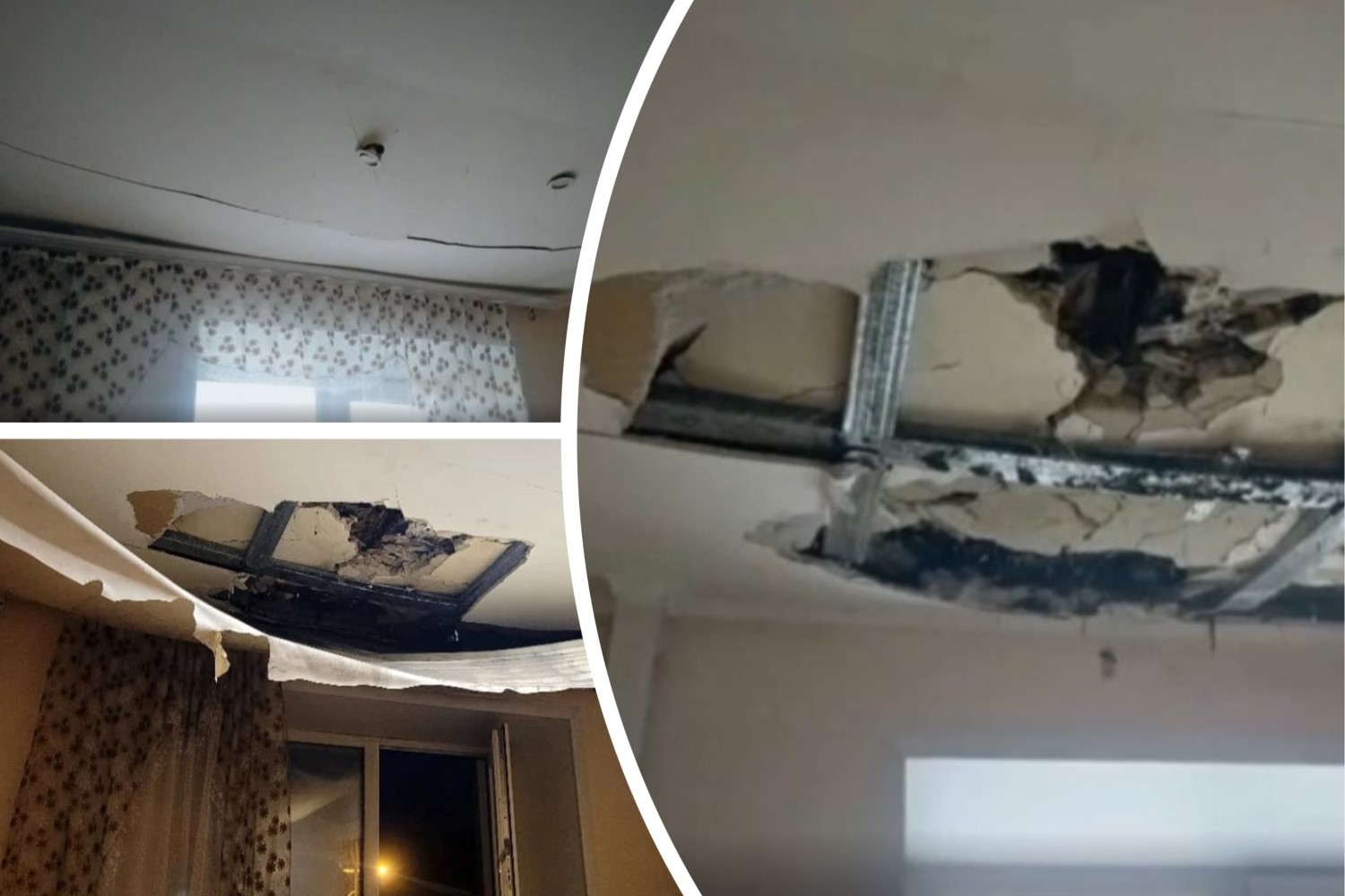 В 2022-ом на кухне начал рушится потолок, а в конце 2025 года штукатурка упала уже в одной из жилых комнат.