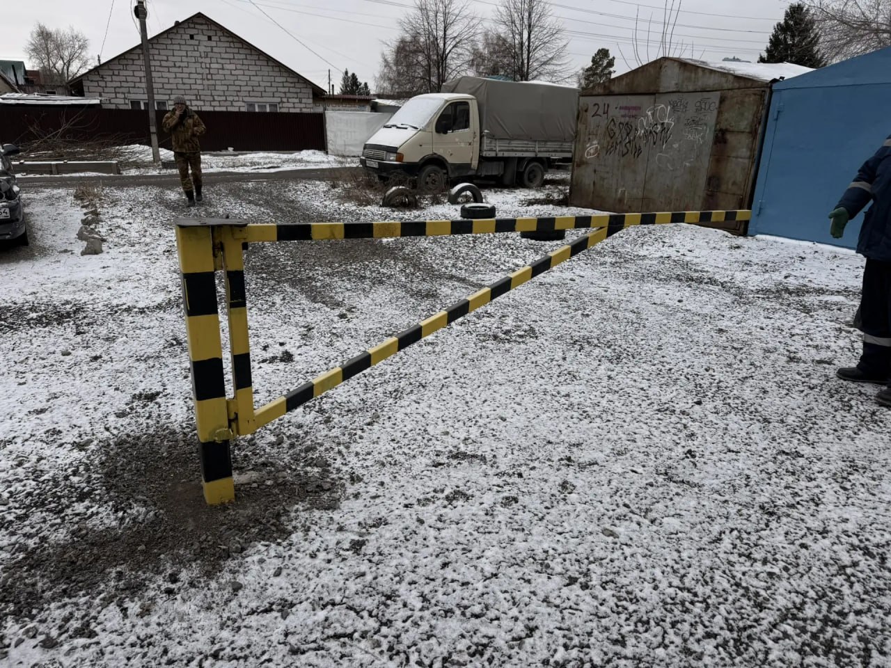 На Степной, 63,\2 горожане, решив, что «это наша парковка и только мы будем ей пользоваться», пошли еще дальше и без согласования с мэрией установили шлагбаум, блокировав таким образом проезд по муниципальной земле.