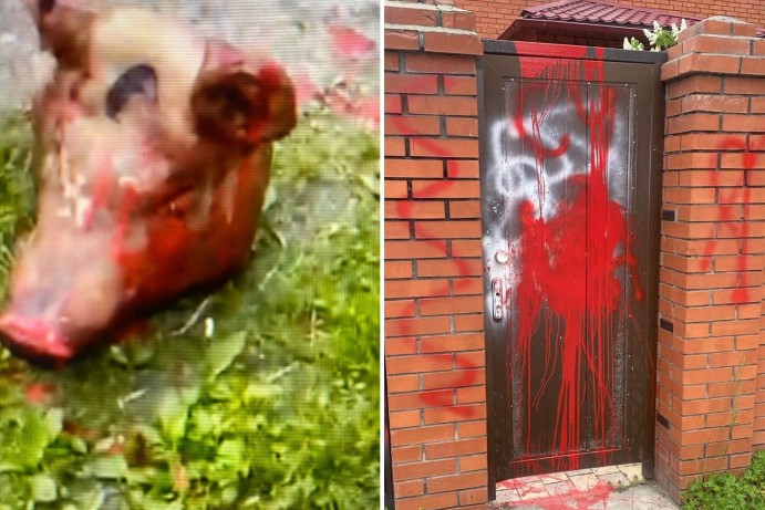 В редакцию «Прецедента» обратилась жительница частного сектора Ирина (имя изменено), которая предоставила фотосвидетельства целой серии актов вандализма. Забор у дома сибирячки исписали и залили красной краской. Кроме того, по округе кто-то расклеил объявления сомнительного содержания и оскорбительного характера. Но апофеозом стала свиная голова, которую двое персонажей оставили ночью у калитки.