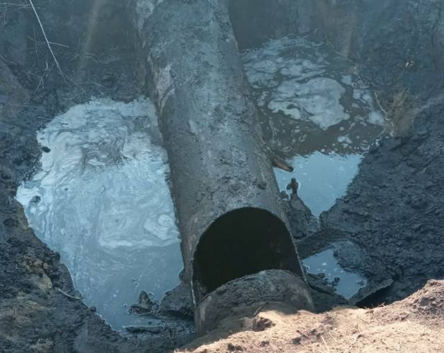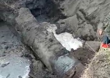 Сегодня, 22 апреля, трубу планировали закопать, но местные жители не дали рабочим этого сделать, так как заметили, что из трубы по-прежнему подтекает вода.