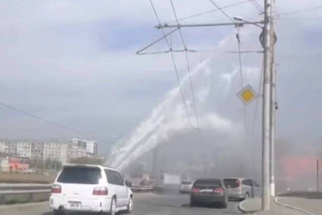 Уточняется, что необычная коммунальная авария произошла в Новосибирске на Ипподромской магистрали. По словам очевидцев, высота «фонтана» – порядка 8 метров.