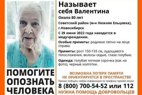 В Новосибирске ищут родственников бабушки, которую с улицы скорая помощь доставила в больницу. Сама пенсионерка называет себя Валентиной, ей около 80 лет.