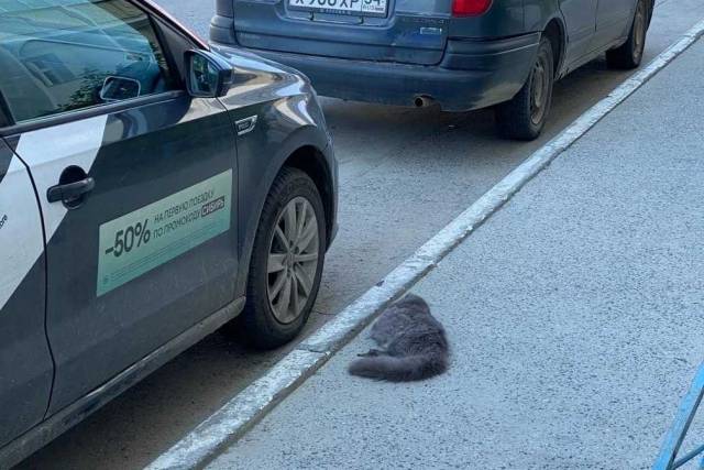 Уточняется, что мёртвого кота, лежащего на асфальте, очевидцы заметили сегодня утром, 11 июля, во дворе дома №66/5 по улице Фадеева.