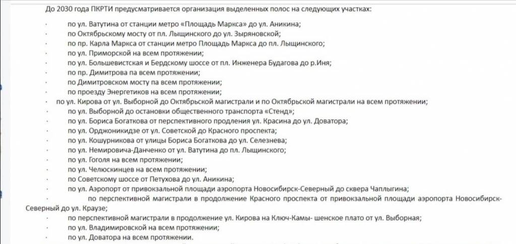 Таким образом, до 2030 года, в Новосибирске планируется организовать 22 выделенные полосы для движения общественного транспорта. Перечислим их: