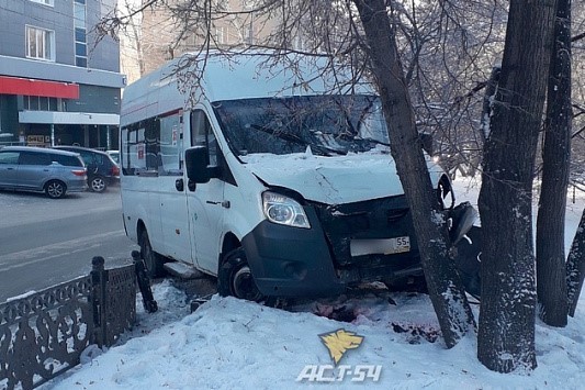Очевидцы сообщают, что авария произошла в понедельник, 12 декабря, на улице Восход в Октябрьском районе Новосибирска. По неподтвержденной информации, водитель маршрутки пытался избежать наезда на пешеходов, из-за чего врезался в заднюю часть автомобиля Infiniti, а потом снес ограждение и врезался в дерево.