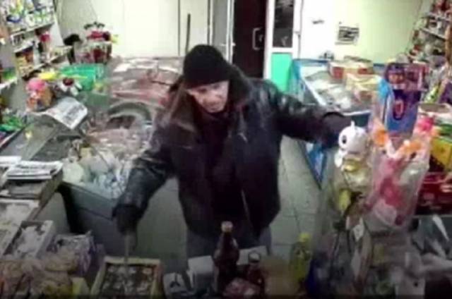 Момент совершения преступления попал на камеры видеонаблюдения. Отчетливо видно, как грабитель попросил показать ему товар. Когда продавщица нагнулась, злоумышленник достал нож и ранил ее.