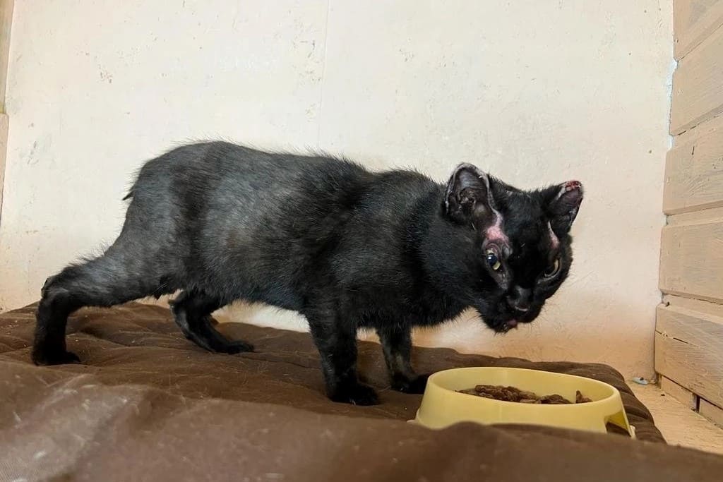 Через неделю кошка сама пришла к домику сторожа. По всему её телу были рубцы, но особенно пострадала голова: обожжены уши и кожа. Глаза животного перестали закрываться.