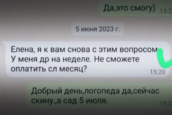 — Она, давя на жалость, на какие-то свои проблемы личные, начинала закидывать этими проблемами личными родительниц, рассказывать разные всем версии, на что нужны деньги. Рассказывала как у нее болеет дочь, мы все прониклись ее горем, поняли ее. Она — оплатите раньше за месяц. Я, например, оплатила 15 числа, а 20-го она говорит, оплатите еще за один месяц, я вошла в положение и оплатила, — говорит Анастасия Кисембаева.