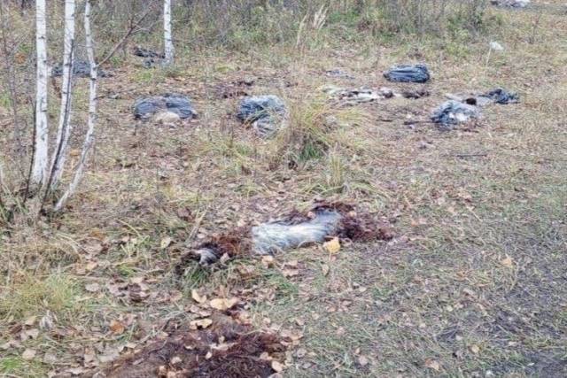 Очевидцы предположили, что трупы принадлежат собакам. Тела животных настолько изуродованы, что трудно разобрать, какое именно животное на фото. Кое-где на снимках видны копыта, а значит, трупы могут принадлежать крупному рогатому скоту.