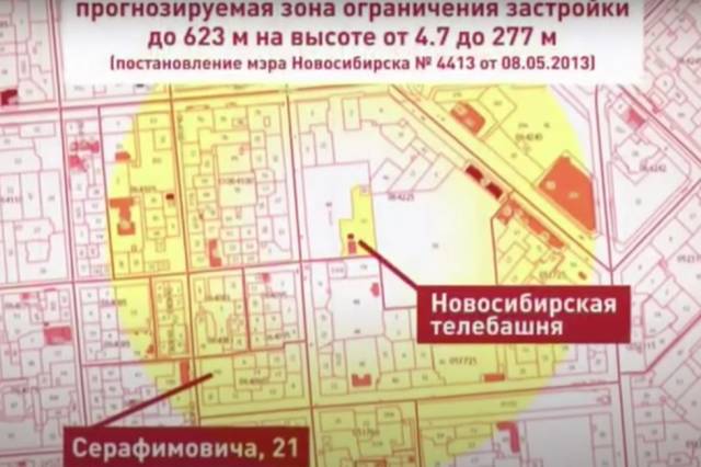 Но есть и побочный эффект: из-за электромагнитного излучения в радиусе 623 метров от вышки действует зона ограничения застройки. Высотка на Серафимовича угодила в критические 400 метров.