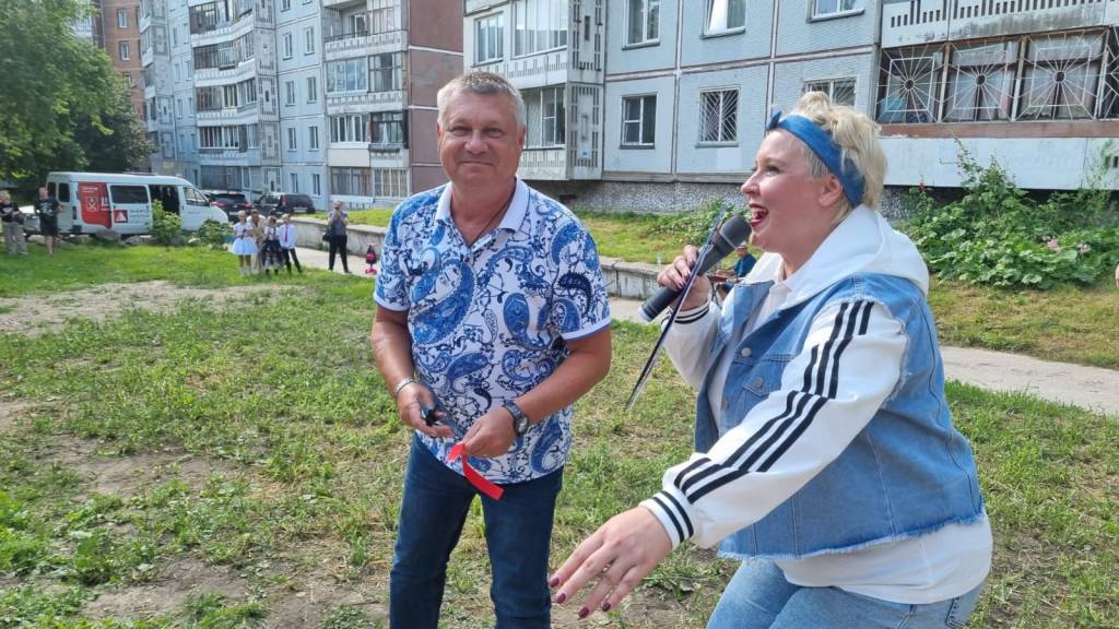 Новую площадку открыли торжественным перерезанием ленточки и праздничным концертом. Перед жителями выступили артисты из творческого коллектива «Юность».